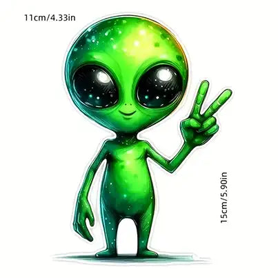 Add a touch of humour and personality to your car with this Fun Alien Car Sticker. Measuring 11cm x 15cm and made from durable, waterproof vinyl, it withstands all weather conditions while sticking securely to your window or car surface. Easy to apply and remove without residue, this decal is perfect for anyone looking to make their vehicle stand out with a playful vibe.